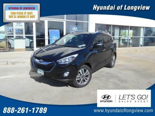 2014 Hyundai TUCSON Hyundai of Longview presents this 2014 Hyundai TUCSON AWD 4dr Limited. Represented in ASH BLACK and complimented nicely by its GRAY interior. Under the hood you will find the 4-Cyl PZEV 2.4L coupled with the 6-SPD AUTO SHIFTRONIC. Warranty Information: Purchase this Hyundai with confidence knowing it is backed with a 60 month / 60000 mile warranty. Options and Safety Features: Nicely equipped with ABS And Driveline Traction Control, Airbag Occupancy Sensor, Blue Link Emergency S.O.S, Curtain 1st And 2nd Row Airbags, Dual Stage Driver And Passenger Front Airbags, Dual Stage Driver And Passenger Seat-Mounted Side Airbags, Electronic Stability Control (ESC), Low Tire Pressure Warning, Outboard Front Lap And Shoulder Safety Belts -inc: Rear Center 3 Point, Height Adjusters and Pretensioners, Rear Camera, Rear Child Safety Locks, Restricted Driving Mode, Side Impact Beams and ABS (4-WHEEL), AIR CONDITIONING, ALLOY WHEELS, AM/FM STEREO, BACKUP CAMERA, BLUE LINK, BLUETOOTH WIRELESS, CRUISE CONTROL, DOWNHILL ASSIST CONTROL, DUAL AIR BAGS, ELECTRONIC STABILITY CONTROL, HEAD CURTAIN AIR BAGS, HEATED SEATS, HILL START ASSIST CONTROL, KEYLESS ENTRY, KEYLESS START, LEATHER, MP3 (SINGLE DISC), POWER DOOR LOCKS, POWER STEERING, POWER WINDOWS, PRIVACY GLASS, SIDE AIR BAGS, SIRIUSXM SATELLITE, TILT & TELESCOPING WHEEL, TRACTION CONTROL. Hyundai of Longview WE WILL BEAT ANY DEAL! At Hyundai of Longview our goal is to provide you with an excellent vehicle purchase and ownership experience. For the finest in personal customer service, please contact the Internet Department directly through this website. Also, please note, we take great care to keep our listings up to date, however our inventory changes daily and not all inventory is online. If you do not see what you are looking for, then please call. We look forward to providing you with excellent customer service and welcoming you as a Hyundai of Longview client. You can reach us at 888-464-9302 or by "You pick it out and We'll work it out!"