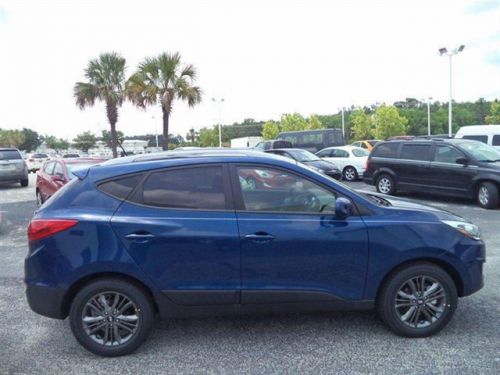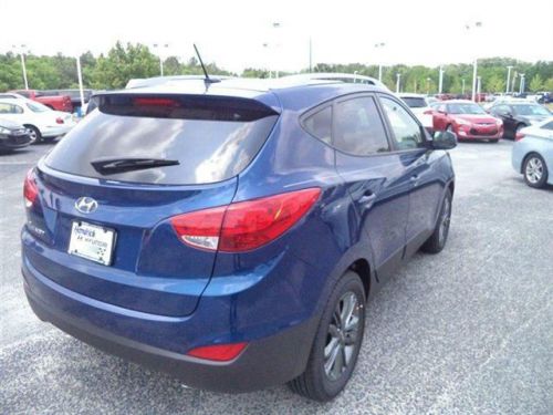 This 2014 Hyundai Tucson 4dr FWD 4dr SE SUV features a 2.4L THETA II DOHC 16V I4 4cyl Gasoline engine. It is equipped with a 6 Speed Automatic transmission. The vehicle is Laguna Blue Metallic with a Taupe interior. It is offered with a full factory warranty. - Cruise Control, Tinted Windows, Power Door Locks, Roof Rack, Tachometer, Digital Info Center, Tilt Steering Wheel, Steering Wheel Radio Controls, Side Airbags, Keyless Entry, Security System, ABS Brakes, Traction Control, Dynamic Stability, Rear Defogger, Fog Lights, Alloy Wheels, Gate Type, Electronic Shift Lock System And Manual Shift Mode, 2.4L Theta II DOHC 16V I4 with CVVT MPI, Front-Wheel Drive, Heated Front Bucket Seats -inc: high/low heat settings, 4-Way Passenger Seat -inc: Manual Recline and Fore/Aft Movement, Power Rear Windows and Fixed 3rd Row Windows, Front Cupholder, Rear Cupholder, Remote Releases -Inc: Mechanical Fuel, HVAC -inc: Underseat Ducts and Console Ducts, Illuminated Locking Glove Box, Driver Foot Rest, Interior Trim -inc: Metal-Look Interior Accents, Full Cloth Headliner, Urethane Gear Shift Knob, Leatherette Door Trim Insert, Driver And Passenger Visor Vanity Mirrors with Driver And Passenger Illumination, Full Floor Console with Covered Storage, Front Map Lights, Fade-To-Off Interior Lighting, Full Carpet Floor Covering, Carpet Floor Trim, Cargo Area Concealed Storage, Cargo Space Lights, Driver / Passenger And Rear Door Bins, Power 1st Row Windows with Driver 1-Touch Up/Down, Delayed Accessory Power, Digital/Analog Display, Manual Adjustable Rear Head Restraints, Front Center Armrest and Rear Center Armrest, 3 12V DC Power Outlets, Air Filtration, taupe, Compact Spare Tire Mounted Inside Under Cargo, Clearcoat Paint, Body-Colored Front Bumper, Body-Colored Rear Bumper with Black Rub Strip/Fascia Accent, Black Side Windows Trim and Black Front Windshield Trim, Body-Colored Door Handles, Black Bodyside Cladding, Lip Spoiler, Body-Colored Grille, Liftgate Rear Cargo Access, ... HYUNDAI HAS THE MOST MODERN, ATTRACTIVE, UPDATED LINE-UP FOR 2012. GET MORE CAR FOR YOUR HARD-EARNED DOLLAR FROM HENDRICK HYUNDAI'S INTERNET SALES TEAM!