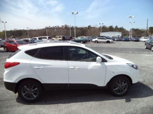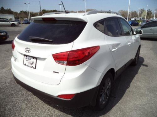 This 2014 Hyundai Tucson 4dr AWD 4dr SE SUV features a 2.4L THETA II DOHC 16V I4 4cyl Gasoline engine. It is equipped with a 6 Speed Automatic transmission. The vehicle is Winter White with a Taupe interior. It is offered with a full factory warranty. - Cruise Control, Tinted Windows, Power Door Locks, Roof Rack, Tachometer, Digital Info Center, Tilt Steering Wheel, Steering Wheel Radio Controls, Side Airbags, Keyless Entry, Security System, ABS Brakes, Traction Control, Dynamic Stability, Rear Defogger, Fog Lights, Alloy Wheels, Gate Type, Electronic Shift Lock System And Manual Shift Mode, 2.4L Theta II DOHC 16V I4 with CVVT MPI, Automatic Full-Time All-Wheel Drive, Heated Front Bucket Seats -inc: high/low heat settings, 4-Way Passenger Seat -inc: Manual Recline and Fore/Aft Movement, Power Rear Windows and Fixed 3rd Row Windows, Front Cupholder, Rear Cupholder, Remote Releases -Inc: Mechanical Fuel, HVAC -inc: Underseat Ducts and Console Ducts, Illuminated Locking Glove Box, Driver Foot Rest, Interior Trim -inc: Metal-Look Interior Accents, Full Cloth Headliner, Urethane Gear Shift Knob, Leatherette Door Trim Insert, Driver And Passenger Visor Vanity Mirrors with Driver And Passenger Illumination, Full Floor Console with Covered Storage, Front Map Lights, Fade-To-Off Interior Lighting, Full Carpet Floor Covering, Carpet Floor Trim, Cargo Area Concealed Storage, Cargo Space Lights, Driver / Passenger And Rear Door Bins, Power 1st Row Windows with Driver 1-Touch Up/Down, Delayed Accessory Power, Digital/Analog Display, Manual Adjustable Rear Head Restraints, Front Center Armrest and Rear Center Armrest, 3 12V DC Power Outlets, Air Filtration, taupe, Compact Spare Tire Mounted Inside Under Cargo, Clearcoat Paint, Body-Colored Front Bumper, Body-Colored Rear Bumper with Black Rub Strip/Fascia Accent, Black Side Windows Trim and Black Front Windshield Trim, Body-Colored Door Handles, Black Bodyside Cladding, Lip Spoiler, Body-Colored Grille, Liftgate Rear Car ... HYUNDAI HAS THE MOST MODERN, ATTRACTIVE, UPDATED LINE-UP FOR 2012. GET MORE CAR FOR YOUR HARD-EARNED DOLLAR FROM HENDRICK HYUNDAI'S INTERNET SALES TEAM!