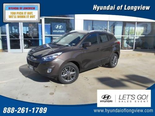 2014 Hyundai TUCSON Hyundai of Longview presents this 2014 Hyundai TUCSON FWD 4dr SE. Represented in KONA_BRONZE and complimented nicely by its GRAY interior. Under the hood you will find the 4-Cyl PZEV 2.4L coupled with the 6-SPD AUTO SHIFTRONIC. Warranty Information: Purchase this Hyundai with confidence knowing it is backed with a 60 month / 60000 mile warranty. Options and Safety Features: Nicely equipped with ABS And Driveline Traction Control, Airbag Occupancy Sensor, Curtain 1st And 2nd Row Airbags, Dual Stage Driver And Passenger Front Airbags, Dual Stage Driver And Passenger Seat-Mounted Side Airbags, Electronic Stability Control (ESC), Low Tire Pressure Warning, Outboard Front Lap And Shoulder Safety Belts -inc: Rear Center 3 Point, Height Adjusters and Pretensioners, Rear Camera, Rear Child Safety Locks, Side Impact Beams and ABS (4-WHEEL), AIR CONDITIONING, ALLOY WHEELS, AM/FM STEREO, BACKUP CAMERA, BLUETOOTH WIRELESS, CRUISE CONTROL, DOWNHILL ASSIST CONTROL, DUAL AIR BAGS, ELECTRONIC STABILITY CONTROL, HEAD CURTAIN AIR BAGS, HEATED SEATS, HILL START ASSIST CONTROL, KEYLESS ENTRY, MP3 (SINGLE DISC), POWER DOOR LOCKS, POWER STEERING, POWER WINDOWS, PRIVACY GLASS, SIDE AIR BAGS, SIRIUSXM SATELLITE, TILT & TELESCOPING WHEEL, TRACTION CONTROL. Hyundai of Longview WE WILL BEAT ANY DEAL! At Hyundai of Longview our goal is to provide you with an excellent vehicle purchase and ownership experience. For the finest in personal customer service, please contact the Internet Department directly through this website. Also, please note, we take great care to keep our listings up to date, however our inventory changes daily and not all inventory is online. If you do not see what you are looking for, then please call. We look forward to providing you with excellent customer service and welcoming you as a Hyundai of Longview client. You can reach us at 888-464-9302 or by visiting us online at www.hyundaioflongview.com. Please call us for more information. "You pick it out and We'll work it out!"