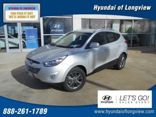 2014 Hyundai TUCSON Hyundai of Longview presents this 2014 Hyundai TUCSON FWD 4dr SE. Represented in SILVER and complimented nicely by its BLACK interior. Under the hood you will find the 4-Cyl PZEV 2.4L coupled with the 6-SPD AUTO SHIFTRONIC. Warranty Information: Purchase this Hyundai with confidence knowing it is backed with a 60 month / 60000 mile warranty. Options and Safety Features: Nicely equipped with ABS And Driveline Traction Control, Airbag Occupancy Sensor, Curtain 1st And 2nd Row Airbags, Dual Stage Driver And Passenger Front Airbags, Dual Stage Driver And Passenger Seat-Mounted Side Airbags, Electronic Stability Control (ESC), Low Tire Pressure Warning, Outboard Front Lap And Shoulder Safety Belts -inc: Rear Center 3 Point, Height Adjusters and Pretensioners, Rear Camera, Rear Child Safety Locks, Side Impact Beams and 110 AMP ALTERNATOR, 15.3 GAL. FUEL TANK, 3.195 AXLE RATIO, 54-AMP/HR 600CCA MAINTENANCE-FREE BATTERY W/RUN DOWN PROTECTION, ABS (4-WHEEL), AIR CONDITIONING, ALLOY WHEELS, AM/FM STEREO, BACKUP CAMERA, BLUETOOTH WIRELESS, CRUISE CONTROL, DOWNHILL ASSIST CONTROL, DUAL AIR BAGS, ELECTRIC POWER-ASSIST SPEED-SENSING STEERING, ELECTRONIC STABILITY CONTROL, ENGINE: 2.4L THETA 2 DOHC 16V I4 W/CVVT MPI, FRONT AND REAR ANTI-ROLL BARS, GVWR: 4497 LBS, HEAD CURTAIN AIR BAGS, HEATED SEATS, HILL START ASSIST CONTROL, KEYLESS ENTRY, MP3 (SINGLE DISC), MULTI-LINK REAR SUSPENSION W/COIL SPRINGS, POWER DOOR LOCKS, POWER STEERING, POWER WINDOWS, PRIVACY GLASS, SACHS GAS-PRESSURIZED SHOCK ABSORBERS, SIDE AIR BAGS, SINGLE STAINLESS STEEL EXHAUST, SIRIUSXM SATELLITE, STRUT FRONT SUSPENSION W/COIL SPRINGS, TILT & TELESCOPING WHEEL, TRACTION CONTROL, W/DRIVER SELECTABLE MODE. Hyundai of Longview WE WILL BEAT ANY DEAL! At Hyundai of Longview our goal is to provide you with an excellent vehicle purchase and ownership experience. For the finest in personal customer service, please contact the Internet Department directly through this website. Also, please "You pick it out and We'll work it out!"