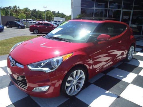 Hyundai Certified, Excellent Condition, GREAT MILES 5,524! JUST REPRICED FROM $18,795, $2,600 below NADA Retail!, EPA 37 MPG Hwy/28 MPG City! Satellite Radio, Overhead Airbag, Alloy Wheels, Onboard Communications System, CD Player AND MORE!======DRIVE WITH CONFIDENCE: 150-Point Inspection and Reconditioning, 24-Hour Roadside Assistance, 10-Year/ 100, 000 mile powertrain limited warrantty, Towing/Rental/Travel Breakdown Benefits, Carfax Vehicle History Report, 10-Year/Unlimited mileage roadside assistance & 1st-Day Rental Car reimbursement for covered repairs ======AFFORDABILITY: Reduced from $18, 795. This Veloster is priced $2, 600 below NADA Retail. ======KEY FEATURES INCLUDE: Satellite Radio, iPod/MP3 Input, CD Player, Onboard Communications System. Rear Spoiler, MP3 Player, Keyless Entry, Steering Wheel Controls, Child Safety Locks. ======OPTION PACKAGES: STYLE PKG: 18 alloy wheels, P215/40R18 tires, chrome grille surround with piano black highlights, front fog lights, panoramic sunroof, piano black interior accents, Dimension premium audio system, (8) speakers, external amp, subwoofer, leatherette seat bolsters & door inserts, leather wrapped steering wheel, leather wrapped shift knob, alloy pedals, pwr driver auto-up window, AUTO-DIMMING REAR VIEW MIRROR with HOMELINK, CARPETED FLOOR MATS, MUDGUARDS, BOSTON RED, GRAY, CLOTH SEATS. with Gray Int with Boston Red exterior and Gray interior features a 4 Cylinder Engine with 132 HP at 6300 RPM*. Serviced here, Non-Smoker vehicle, Originally bought here, 4 brand new tires, Fully Inspected, New Brakes. ======VEHICLE REVIEWS: Sporty styling, decent horsepower, hatchback practicality Great Gas Mileage: 37 MPG Hwy. Closing Fee is included in the advertised/sales price. Pricing analysis performed on 6/6/2014. Horsepower calculations based on trim engine configuration. Fuel economy calculations based on original manufacturer data for trim engine configuration. Please confirm the accuracy of the included equipment ... WE HAVE ACCESS TO THOUSANDS OF USED CARS THROUGH OUR SISTER STORES ALL OVER THE SOUTH EAST! GET MORE USED CAR FOR YOUR HARD-EARNED DOLLAR FROM HENDRICK HYUNDAI'S INTERNET SALES TEAM!
