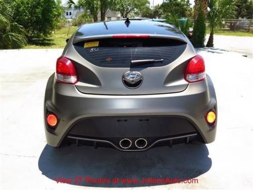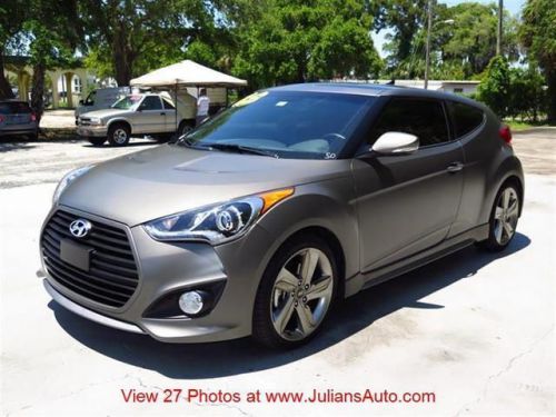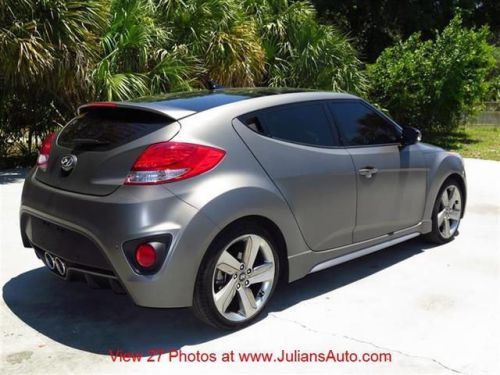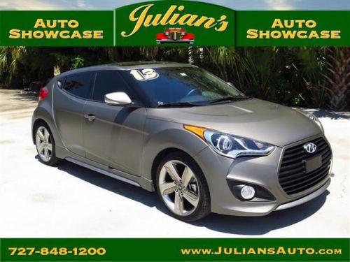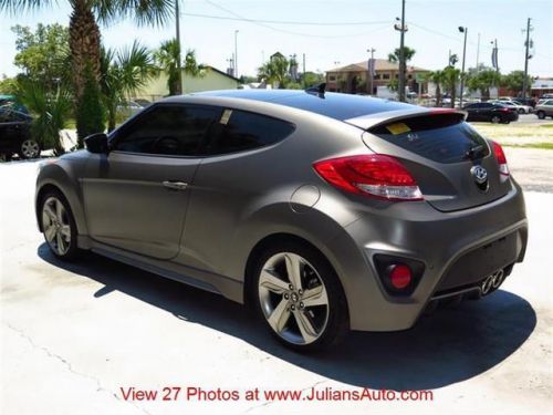 TURBO! RARE MATTE FINISH, NAVI, DEALER UPGRADED REARVIEW MIRROR WITH BACKUP CAMERA AND COMPASS. PANORAMIC SUNROOF, EVERY AVAILABLE OPTION AND MORE! Welcome to Julian's Auto Showcase virtual online tour... We present to you this 2013 Hyundai Veloster Turbo! **Very rare factory matte paint** **6-speed manual** **35 MPG** **Keyless entry w/Push start button** **Panoramic Sunroof**. Has every upgrade available from the factory, Ultimate package. style package. Upgraded factory mirror (auto-dim, bluelink, homelink, compass). Fully loaded with all the goodies. Dealership tinted. Bluetooth. USB. All scheduled maintenance, Always garaged, Excellent condition, Factory GPS system, Looks & drives great, Must see, No accidents, Non-smoker, Satellite radio, Still under factory warranty, Excellent condition inside and out. Includes free custom fitted sunvisor. ALSO, dealer ordered and installed rear view mirror with compass and back up camera, Homelink, and a huge panoramic sunroof! All preowned vehicles are not created equal. We inspect our vehicles, sometimes twice, to make sure that you are getting one of the finest automobiles available. That being said, we are not a new car store and preowned vehicles will have normal wear and tear that is in keeping with the year & miles. Thanks for looking and we look forward to doing business with you at Julian's Auto. Call 877-340-4605 or come by today... Located at Julian's Auto Showcase 6404 US HWY 19 NEW PORT RICHEY, FL, 34652 online mobile.juliansauto.com WARNING - THIS VEHICLE IS CURRENTLY BEING SEEN BY THOUSANDS OF CUSTOMERS ALL OVER THE WORLD! We use state of the art software to price our vehicles to be the most competitive in the market. If you have found a better value, let us know about it. We would love the opportunity to keep giving the best At Julian's Auto we only keep 1 out of every 20 trade-ins... Everyone of our vehicles is put through an INTENSIVE inspection process to guarantee our customers a quality vehic Julian's Auto Showcase is the #1 selling independent car dealer in Pasco County! Come to Julian's for the Best Deal in Town! Visit us Monday through Saturday 8:30am-8:00pm and Sundays 11:00am-4:00pm. Good Credit, Bad Credit, No Credit - We Do it All! Give us the chance to save you THOUSANDS of DOLLARS and EARN YOUR BUSINESS - You'll be glad you did!