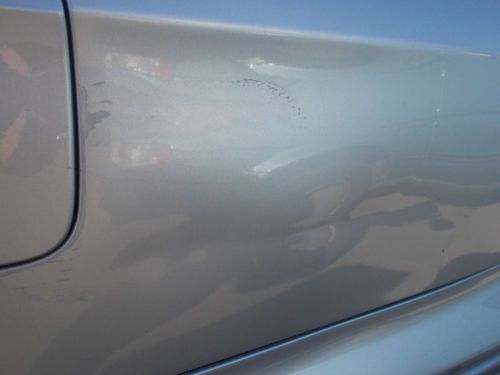 Silver and is showing signs of wear and is faded. It has a few door dings and scratches. The tires appear to HAVE ROUGHLY 35% road