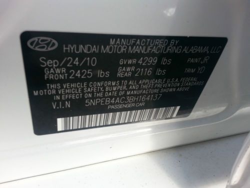 11 hyundai sonata 4 door sedan 2.4l great gas saver