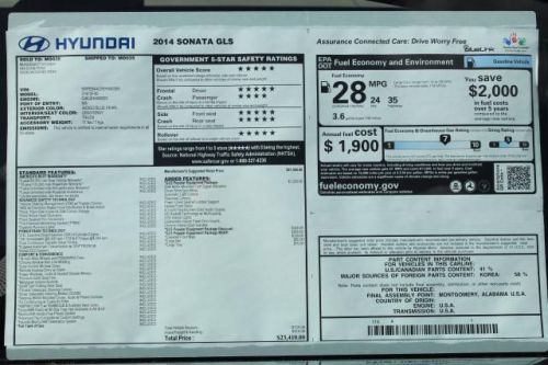 Sonata GLS, 4D Sedan, 4-Cylinder, 6-Speed Automatic with Shiftronic, FWD, Indigo Blue, and Gry Premium Cloth. Hey! Look right here! Here it is! When was the last time you smiled as you turned the ignition key? Feel it again with this charming-looking 2014 Hyundai Sonata. A spacious car that gets great fuel mileage... Why torture yourself driving a small commuter box up and down the highway every day when you can ride in roomy comfort. Experience the Mungenast Difference! Visit us at mungenasthyundai.com. Mungenast Hyundai in Hazelwood just off of North Lindbergh and I-270 at 649 Dunn Rd, Hazelwood, MO 63042 888-212-1161 St Louis's Low-Priced Volume Hyundai Dealer! Remember, Hyundai makes the car, Mungenast makes the difference!Prices do not include additional fees and costs of closing, including government fees and taxes, any finance charges, any dealer fees, any emissions testing fees or other fees. All prices, specifications and availability subject to change without notice. Contact dealer for most current information. Advertised price includes all available factory and dealership rebates and discounts. See Mungenast Hyundai for complete details. This offer includes all rebates and dealer cash back to the dealer. Includes the $2000 HMF Bonus cash so this offer in not available with 0% financing. Includes Valued Owner Rebate of $500 and Military Rebate of $500. See a Mungenast Sales Associate for complete details and requirements for rebates. All Dealer Installed Accessories are extra. Come Experience the Mungenast Difference at Mungenast Hyundai. St Louis' Low Price Volume Hyundai Dealership. View the new prices at MungenastHyundai.com At 270 and N. Lindberg on Dunn Rd in Hazelwood, MO. Remember Hyundai Makes the Car, Mungenast Makes the Difference! 888-212-1161
