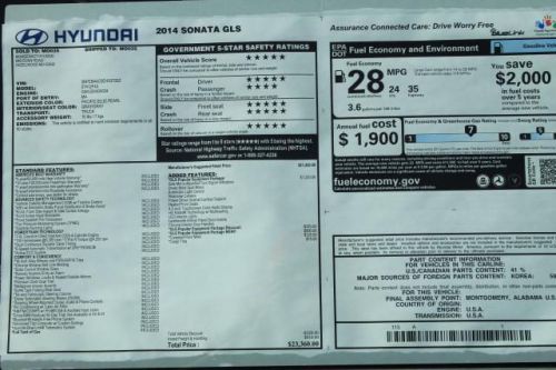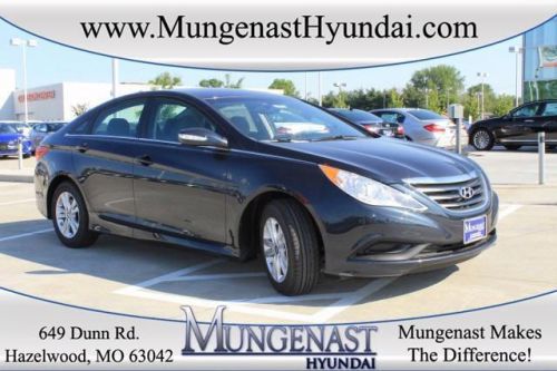Sonata GLS, 4D Sedan, 4-Cylinder, 6-Speed Automatic with Shiftronic, FWD, Pacific Blue, Gry Premium Cloth, ABS brakes, Alloy wheels, Electronic Stability Control, Emergency communication system, Heated door mirrors, Illuminated entry, Low tire pressure warning, Remote keyless entry, and Traction control. This fantastic 2014 Hyundai Sonata is the gas-saving vehicle you've been hunting for. Some say you can't judge a book by its cover, but maybe you can by its color! The paint on this Sonata speaks volumes about its personality. Experience the Mungenast Difference! Visit us at mungenasthyundai.com. Mungenast Hyundai in Hazelwood just off of North Lindbergh and I-270 at 649 Dunn Rd, Hazelwood, MO 63042 888-212-1161 St Louis's Low-Priced Volume Hyundai Dealer! Remember, Hyundai makes the car, Mungenast makes the difference!Prices do not include additional fees and costs of closing, including government fees and taxes, any finance charges, any dealer fees, any emissions testing fees or other fees. All prices, specifications and availability subject to change without notice. Contact dealer for most current information. Advertised price includes all available factory and dealership rebates and discounts. See Mungenast Hyundai for complete details. This offer includes all rebates and dealer cash back to the dealer. Includes the $2000 HMF Bonus cash so this offer in not available with 0% financing. Includes Valued Owner Rebate of $500 and Military Rebate of $500. See a Mungenast Sales Associate for complete details and requirements for rebates. All Dealer Installed Accessories are extra. Come Experience the Mungenast Difference at Mungenast Hyundai. St Louis' Low Price Volume Hyundai Dealership. View the new prices at MungenastHyundai.com At 270 and N. Lindberg on Dunn Rd in Hazelwood, MO. Remember Hyundai Makes the Car, Mungenast Makes the Difference! 888-212-1161