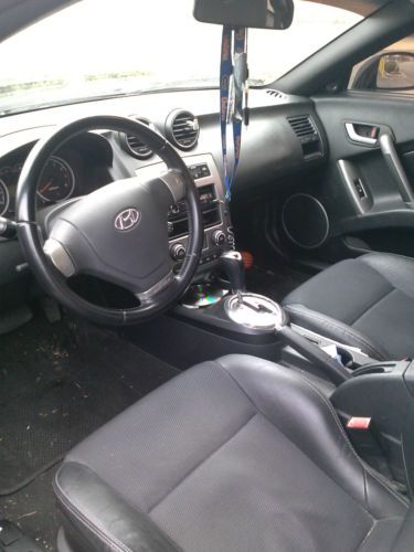 This is my 2008 Hyundai Tiburon gt limited 2.7l v6 4sp automatic wth shiftronic. I bought this car two years ago with 40k miles on it everything was stock. The car now only has just shy of 56k miles. Features i have added include tinted windows, aftermarket stero from sony with aux and usb port, blacked out headlights and taillights, emblems have been removed and the Hyundai h's have been repainted black, 8k HID kit installed, pasti dipped rims black, cold air intake from injen. The interior is extremely clean, all black leather. Ac and heat work like new. Moonroof and all electronics work. This car has been my baby for two years, have done all maintenance and car care myself. The hood has very small dent maybe the size of a quarter drivers side, also has a few spots on body that have been touched up which happens with a 6 year old car.