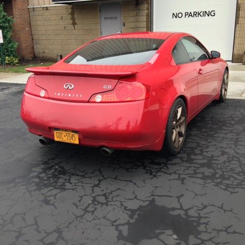 2004 Infiniti G35 coupe 6spd Manual! Has Brembo brakes. All 4 Brand new Tires with less than 500 miles. Very clean leather interior. Runs Great. All the Bells and Whistles! Just way too much to list here... I just bought a boat and Have no need for the car. When I bought the car it had a Salvaged title. Still to this day i'm not sure what the reason was. It has to go through a very intensive Inspection process in order to get a rebuilt title. From what I've been told, it was in an accident and needed the from cowl replaced as well as a headlight. I've owned it for a while now with zero problems. A few flaws on the body. I don't want to have to store it for the winter. My loss is your gain.