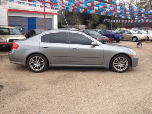 Your looking at a beautiful 2005 Infiniti G35 3.5 V6. This car is immaculate inside/out and drives like a dream. It's a rare vehicle because its a 6-speed manual transmission, very fun to drive. It's a 4 door sedan fully loaded with leather, sunroof, heated seats, power seats, power windows & locks, BOSE, CD player. The exterior doesn't have any dents, dings, or scratches. Mechanically the car drives out great and has been over-all very well kept. If you have any questions feel free to contact me at 225-791-7772.