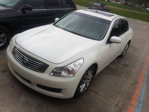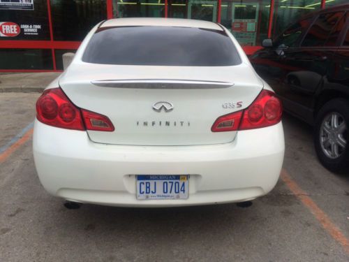 2007 Infiniti G35 Sports Package, gorgeous inside and out. The car is my daily driver so miles will fluctuate a little. Its white with a cream interior, it has the in dash screen, push to start, sunroof moon-roof, 5cd changer, aux cord. Has a few small dings runs and drives great. The car comes with 20in rims i bought for it and the factory rims. It is a salvage rebuilt. Its had nothing but premium gas, and synthetic oil changes.It has ice cold AC and Heat works fine. There is a small gap between the trunk on the right side by the tail light, its not very noticeable but it is there. This car is a steal upgrading for a family vehicle, and questions please feel free to call or text me. 313-778-2114