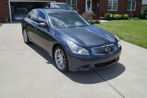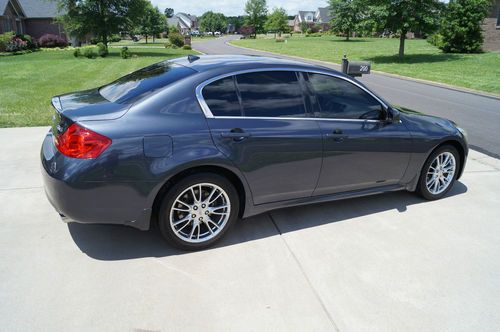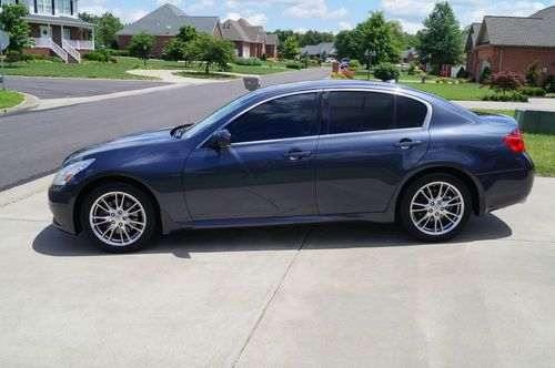 Rare 2008 Infiniti G35XS. Two owner vehicle. Non-smoking. Highway miles. Around 33,000 miles and 3 years left on transferrable extended powertrain warranty. This vehicle is extremely clean for the miles. Looks like a 30,000 mile vehicle. Serviced every 5,000 miles with synthetic oil. Plenty of tread left on recently rotated and balanced wheels/tires. New battery installed a month ago. Loaded with navigation, sunroof, back-up camera, heated seats, power everything. The sport package comes with the larger 18" wheels, magnesium shifters behind steering wheel, and deep bolstered seats.This car is kept clean and is a real headturner. Only expect minor wear/tear on this vehicle. Car is in very good condition inside and out. A lot of car for the money! The color looks like a charcoal gray with a hint of blue.