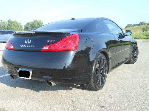 2008 Infiniti G37 Sport Coupe ~59,000 miles Obsidian black exterior, Black leather interior. Rear Spoiler 6 Speed manual transmission 330 HP 3.7L V6 SFI Engine. VDC System (Vehicle Dynamic Control) Keyless proximity entry (2 fobs included) Push-to-start keyless ignition Heated leather/power front seats. Driver seat position memory. 19" premium wheels black powder coated. Tires have ~7000 miles on them. Barely used Blizzak snow tires included Tilt and telescoping wheel Power doors, mirrors, windows and moonroof. Intelligent cruise control (http://www.infinitiusa.com/now/technology/intelligent-cruise-control.html) Bose Premium package which includes, 6 disk CD changer, Bose 11 speaker w/ 2 10 inch subs surround sound, iPod interface, XM satellite, bluetooth Audio steering wheel controls. Dual heated power seats Auto climate control. HID headlights with AFS (Active Front head light System - controls angle of the headlights based on steering position) Adult owned, mostly driven in the summer months, never in snow