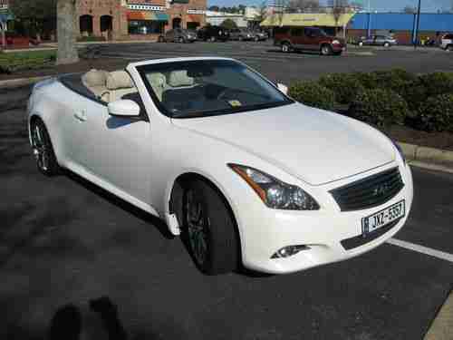 This listing is for a 2011 Infiniti G37 Convertible with the Premium, Navigation, Performance, and Interior Accents Packages. White exterior and Wheat interior. The car is in excellent condition with only 32,543 highway miles since new. Selling for what I owe on it. Might consider partial trades for 2002 - 2009 Infiniti FX 35 or BMW X5 with less than 95k miles.