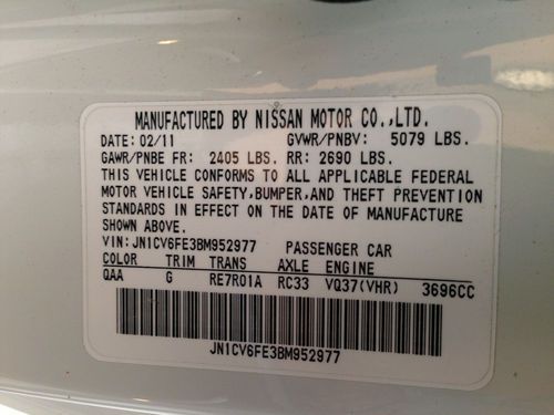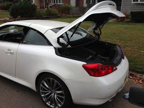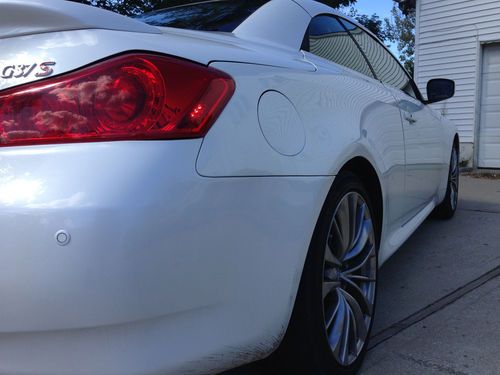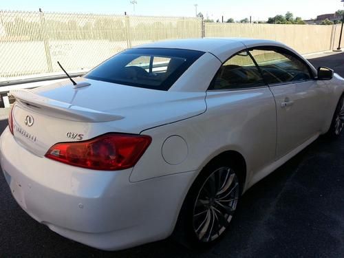 UP FOR SALE IS MY 2011 INFINITY G37S MODEL CONVERTIBLE. THE CAR IS WHITE IN COLOR WITH GREY LEATHER INTERIOR. THE CAR WAS PREVIOUSLY DAMAGED FROM THE REAR END WHICH ONLY DAMAGED THE TRUCK AREA, BACK BUMPER, AND SOME OTHER COSMETIC PARTS.