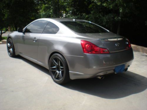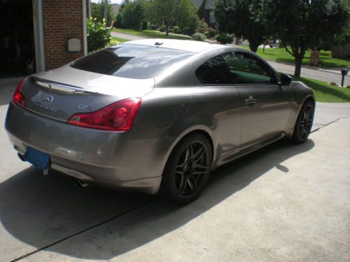 I am selling my 2008 Infiniti G37S Coupe, 3.7 Liter V6, the car is all stock except for the wheels, gray outside, black inside, 65000 miles, miles can change I still drive this car sometimes, car is in great shape, runs and drives great, has black leather interior, heated seats, sunroof, navigation system, bose sound system, back up camera, cd player, hid headlights, with driving lights, has a/m wheels, rear wheels are 19 x 9.5, rears tires are pretty good shape, front wheels are 19 x 8.5 tires are new in front, has rear spoiler, also comes with front bumper lower spoiler, not installed, but is included with car, also has heavy duty disc brake system made by brembo, these are factory brakes from infinity, there is scratch marks on rear bumper cover, and small spot on front bumper cover, and small mark above rt headlight, there are a couple of small door dings, but over all this is a very nice car, and well taken care of, (if you have any question please contact me before you bid), very nice car you will not be disappointed, the car has a clear title and is (SOLD AS-IS, NO RETURNS, AND NO WARRANTY), the reserve is set a couple thousand dollars under Kelly blue book, great buy for the price, buyer will have to pick up car within 7 days after auction is over, also I will require a $500 deposit after auction ends, thanks for looking.