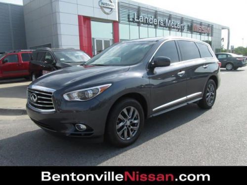 This is a great vehicle at a great price. It has been properly serviced and inspected by our certified trained technicians for your peace of mind. Ask about our lifetime powertrain warranty on selected pre-owned and certified vehicles. NEW ARRIVAL! -NAVIGATION SYSTEM; BACKUP CAMERA; BLUETOOTH; LEATHER SEATS; 3RD ROW SEATING; SATELLITE RADIO; SUNROOF / MOONROOF; ALL WHEEL DRIVE; HIGH INTENSITY HEADLIGHTS; MP3 CD PLAYER; KEYLESS START; POWER LIFT GATE; MULTI-ZONE AIR CONDITIONING; AND REAR AIR CONDITIONING- This JX looks great with a clean Java interior and Diamond Slate exterior! Please call to confirm that this JX is still available! Call us today to schedule a hassle-free test drive! We are located at: 2501 SE Moberly Ln; Bentonville; AR 72712. Call our Internet Sales Department at 866-330-3642 today. Landers McLarty Nissan sincerely appreciates the opportunity to earn your business not just today, but for many years to come. We are the Home of the Lifetime Warranty.
