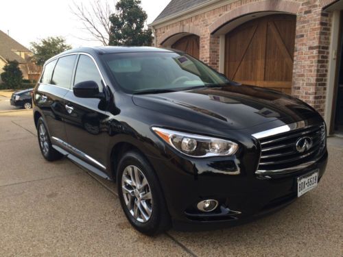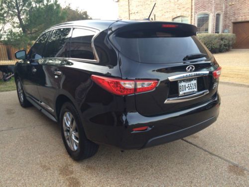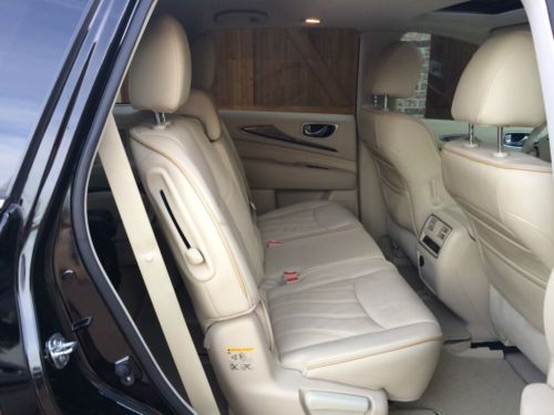 This 2013 Infiniti JX35 is equipped with, Bluetooth hands free phone system, Back-Up camera, Heated seats, Leather seats, Third Row seats, Cruise control, AM/FM radio, XM radio and much more…Under the hood of this fuel efficient Infiniti JX35 is a 3.5 liter 265 horsepower 6 cylinder engine accompanied by 6 Speed-Automatic Transmission with an average estimated 18 City /24 Hwy miles per gallon.. This vehicle is still under original manufacturer’s warranty! This has been my wife's car for the past year and a half, and was purchased direct from Infiniti of Denver. The car is in pristine condition and has never been wrecked. Drives perfectly and has good tread on the tires. The last oil change, I had them put full synthetic oil in. The folding 2nd row even with the baby seat still attached is a huge bonus if you have small kids. Any questions, please let me know, and please no low ball offers - we are not desperate to sell.