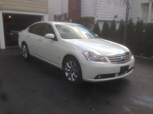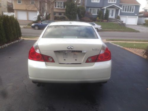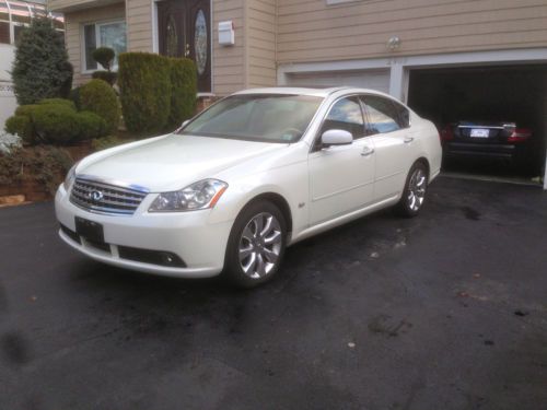 FULLY LOADED pearl white 2006 Infiniti M35X. Always garage kept, barely any noticeable scratches. Tires have about 80% thread left. All Wheel Drive perfect for this season! Has premium Bose audio, navigation, heated/cooled seats, iPod Integration, dual zone climate, reclining seats in the rear, Rear view screen, DVD, player, CD player. It really is fully loaded and in great condition. Make your offer! |
