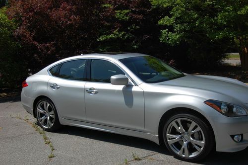 This is a loaded M37 in mint condition. BRAND NEW TIRES just installed. No accidents, no dings, garaged & super clean! It has the great looking Sport package with the 20" wheels, sport suspension, upgraded leather interior, paddle shifters and aerodynamic appearance package. The silver with black leather combination is hard to beat. It has the Premium and Technology packages as well which includes all the nicer options like: heated & cooled seats, BOSE premium sound system with XM radio and hard-drive, Navigation w/ voice recognition, rear backup camera, sunroof, push button start and Smart Key, and much, much more! This is an awesome car and it really turns heads. I have priced this below Kelly Blue Book wholesale (trade-in value) which is thousands less than "Private Party" value. Don't miss your opportunity to buy an beautiful M37S at a fraction of the original MSRP of almost $58k. You can email me with questions or you call or text me at 252.526.8012. Thanks for looking.