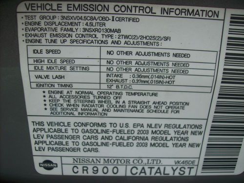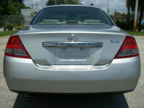 HARD TO FIND. This is a One Owner M45 with all original paint and brand new tires. We did repaint the front bumper due to a few scratches. Infinity only made this model for 2 years, making it very desirable indeed. The car has been checked out by our mechanic, and is ready to go. No problems found. There are a few cosmetic issues that need to be disclosed. Being a 2003 Automobile I want to be as up front as possible. There is slight wear on the drivers seat, the rims have scratches on the outside edge, and there is one small scratch/dent just behind the passenger rear door. Look close at the photos. The car rides and drives 100% and everything works as it should. I am running this a NO RESERVE Auction. The car is also being advertised locally. The auction could end at any time, so please, if you have an interest in completing a deal before it ends reach me on my cell 561-603-4631. We are Family owned and operated and have serving the Palm Beaches for the past 31 years and we do not believe in charging a dealer fee! Our feed back speaks for itself.