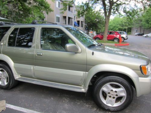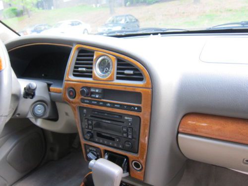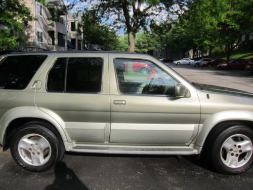 CLEAR MARYLAND TITLE CAR IS CURRENTLY LEAKING TRANSMISSION FLUID I WAS TOLD THAT THE BODY OF THE TRANNY HAS A CRACK IN IT. I HAD JUST GOT A TRANSFER CASE AND FRONT DRIVE SHAFT INSTALLED. THE CAR STILL SHIFT THROUGH GEARS AND REVERSE I DROVE IT HOME TODAY FROM THE MECHANIC. ALSO HAS TEAR IN DRIVERS SEAT AND WILL PROBABLY NEED BRAKES AND ROTORS. ALSO HAS A HOLE IN THE EXHAUST AND CEL HAS BEEN ON FOR SOME TIME. IVE OWNED THE TRUCK FOR A LITTLE OVER 2 YEARS AND UP UNTIL NOW HAS BEEN A PLEASURE TO DRIVE DAILY. SOME DENTS ON DOOR SHOWN IN PICTURES AND SOME SCUFFS NEAR WHEEL WELL AND FRONT BUMPER. ALSO HAS A DENT ON ROOF THAT WAS THERE WHEN I PURCHASED THE TRUCK BUT DIDNT NOTICE UNTIL I GOT HOME LOL. ALSO ONE OF THE HID HEADLIGHTS IS OUT THE GOOD IS COLD AC, HOT HEAT, LOOKS GREAT, LOW PRICE. IVE NEVER SEEN ANOTHER QX4 WITH AS MUCH WOODGRAIN AS THIS ONE LOOKS GREAT WHEN ITS CLEAN. ID REALLY LIKE TO SEE THE CAR GO TO A MECHANIC OR SOMEONE WHO IS SAVVY WITH CARS SO THEY CAN FIX IT UP WITH AS LITTLE MOONEY AS POSSIBLE. IN MY AREA THERE IS SOMEONE SELLING A FULL TRANSMISSION OF A QX4 FOR 550 SO A CHEAP FIX IS POSSIBLE HERE. I HAVE DESCRIBED THE CAR TO THE BEST OF MY ABILITY BUT PLEASE KEEP IN MIND IM NO MECHANIC JUST A HONEST GUY. THANKS FOR LOOKING MESSAGE ME ANY QUESTIONS AND ILL GET BACK TO YOU ASAP |