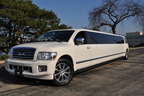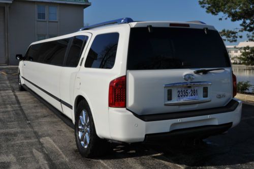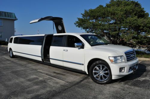 This limo is fully loaded 2008 Infinity QX56 Limosuine with Jet Door. It`s 20 passenger stretch SUV is in perfect mechanical condition, everything works great, no issues. Dual battery, Dual ac compressors, Dual alternators. It is real money maker and runs like new. Full disco ceiling and disco floors, 2 bars with fireplace, 4 TV's, XBox,Fog Machine, CD/DVD, IPOD connection, custom 2 tone leather seats, laser, under body lighting. Clean interior and exterior. New batteries, new alternators, new high performance brakes, new tires, and more...