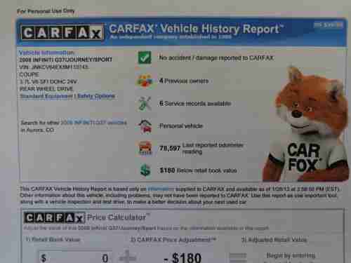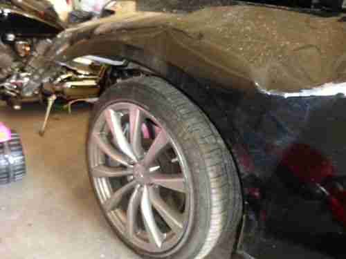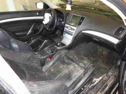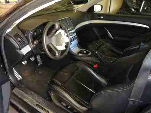 2008 INFINITI G37S COUPE, BLACK ON BLACK, 6 SPEED MANUAL TRANSMISSION WITH APPROX 79K MILES, FULLY LOADED, PUSH START BUTTON, 19" OEM STAGGERED WHEELS, VERY NICE INTERIOR(JUST NEEDS GOOD CLEANING). TOOK A HARD HIT IN THE FRONT, PRETTY MUCH NEEDS ENTIRE FRONT END, TIMING COVER WOULD NEED TO BE REPLACED AS WELL. ONLY DRIVER'S AIR BAG DEPLOYED. DAMAGE WAS NEVER CLAIMED TO INSURANCE DUE LIBALITY COVERAGE, THEREFORE, THE TITLE IS STILL CLEAR AND CLEAN, ALONG WITH A CLEAN CARFAX. I'VE PURCHASED IT AS IT STANDS WITH INTENTIONS TO FIX, BUT LOST INTEREST. KELLY BLUE BOOK IS ABOUT $20K, BUT THESE STILL SELL FOR MORE THAN THAT. WILL BE SOLD AS IS TO THE HIGHEST BIDDER. FIX OR PART IT OUT!!!