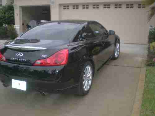 Black on black G37 Journey coupe! Car is in excellent condition - 15,250 miles and always garaged. I bought the car at Atlantic Infiniti in Jacksonville, FL, I moved to DC soon thereafter and it has always been serviced at Passport Infiniti in Alexandra, VA. They have all records - current on all maintenance. Car is fully loaded with Premium Package and Navigation/Back-up Camera Package (includes navigation, back-up camera, heated seats, XM radio, keyless entry & ignition, sunroof, all leather, bluetooth, USB, CD, etc. Passenger seat and back seats have been used fewer than 10 times.