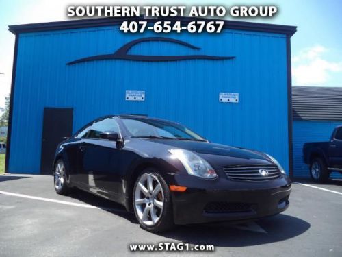 VISIT STAG1.COM FOR MORE INFO * This STUNNING Infiniti G35 coupe is a MUST SEE! Come see why this car was names 2003 MOTOR TREND CAR OF THE YEAR. This fine example of LUXURY combined with PERFORMANCE can be yours TODAY! Features include BOSE PREMIUM SOUND * HEATED LEATHER SEATS * POWER SEATS * SUN-ROOF * AERO-PACKAGE W/ REAR SPOILER * SPORT WHEELS * HOME-LINK SYSTEM PREMIUM PACKAGE * 6 SPEED MANUAL GEARBOX * BREMBO HIGH-PERFORMANCE BRAKES * NO-HAGGLE PRICING. Southern Trust Auto Group, catering to the discerning consumer. NO-HAGGLE PRICING. Financing rates offered as low as 1.35%, with approved credit. Our mission is simple... to provide quality pre-owned vehicles at extremely competitive NO-HAGGLE PRICES, all in a friendly no pressure environment. We stock all makes and models including Nissan, Audi, Volvo, Acura, Hummer, Infiniti, Lincoln, Mazda, Pontiac, Lamborghini, Maserati, BMW, Lexus, Toyota, Cadillac, Dodge, Volkswagen, Lincoln, Mazda, Porsche, Ford, Jeep, Hyundai, GMC, Kia, Nissan, Chevy, Jeep, Honda, SAAB, and Mercedes-Benz. Southern Trust Auto Group is the blue building on Highway 50, just west of the 429 Expressway in Winter Garden, FL. Come visit us... we are open 7 days a week for your convenience. Southern Trust Auto Group, "catering to the discerning consumer". Our mission is simple... to provide quality pre-owned vehicles at extremely competitive NO-HAGGLE prices, all in a friendly no-pressure environment.