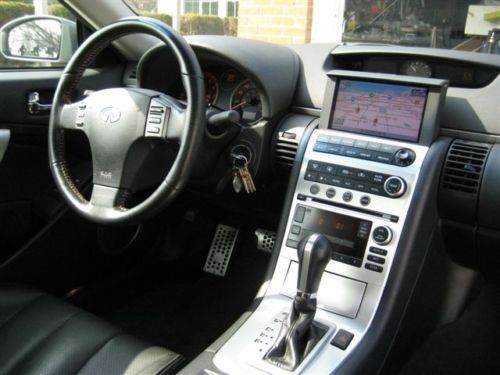 This is a 2005 Black on Black Color 2005 Infiniti G35 2dr Coupe (3.5L 6cyl) with Brilliant Black Exterior, Black Interior. Loaded with 3.5L V6 MPI Engine, Automatic Transmission, GPS Navigation System, Rear Spoiler, Leather Seats, Heated Front Seats, Power Glass Moonroof, Leather Steering Wheel Trim, Cruise Control, Audio Steering Wheel Controls, Bose Audio, CD Audio System, Auto Climate Control, Power Windows, Power Door Locks, Power Exterior Mirrors, Alloy Wheels and more.