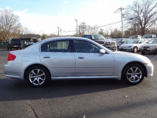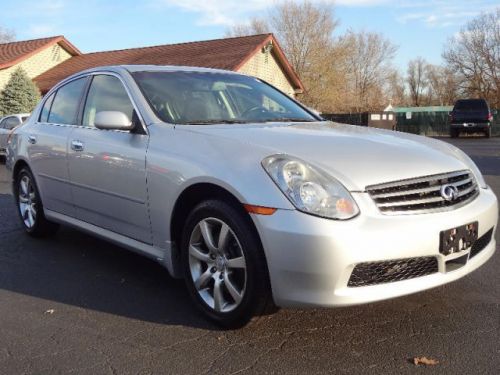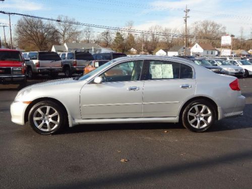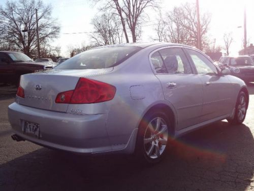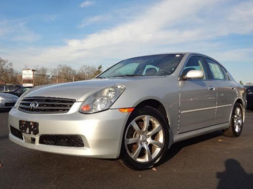 Super clean and fully loaded G35x AWD sedan finished in Liquid Platinum over Graphite Leather interior. This example is in truly excellent condition inside and out and is loaded with all the major options and packages including: Automatic Transmission; All Wheel Drive; Leather interior; Heated front seats; PREMIUM PKG-inc: Bluetooth hands-free phone system, pwr sliding/tilt glass sunroof w/one-touch open/close & safety reverse, Bose stereo w/(7) speakers, auto on/off headlamps, driver seat & steering wheel memory, manually reclining rear seatbacks w/adjustable outboard head restraints, dual zone auto temp control, Homelink universal transceiver, auto-dimming rearview mirror, pwr front/rear windows w/one-touch up/down & safety reverse features, pwr tilt/telescopic steering wheel, auto entry/exit system, intelligent key with keyless entry and starting, rear a/c vents, full size spare tire; Xenon headlamps, and a set of painted splash guards. The car runs and drives great with no known problems or issues and comes complete with all book, extra spare key, and floormats. Truly a super clean example of these great All Wheel Drive sport sedans. Please visit us at our website, www.autolivery.com, for a COMPLETE description of this vehicle, including more pictures, vehicle and warranty info. A link to our website can be found in the "About the Dealer" section found in this ad.