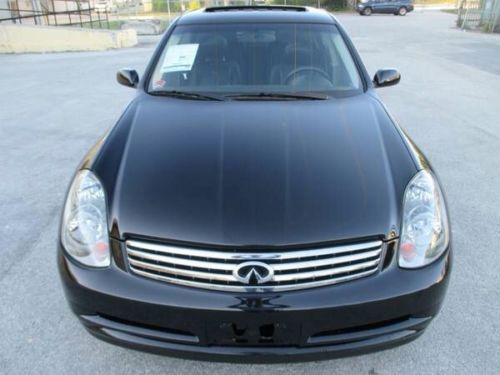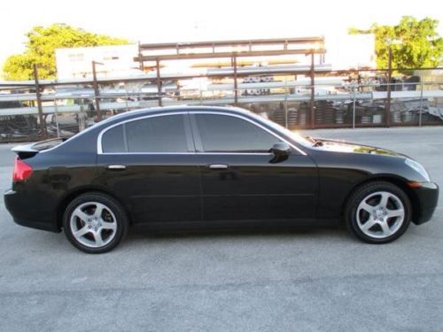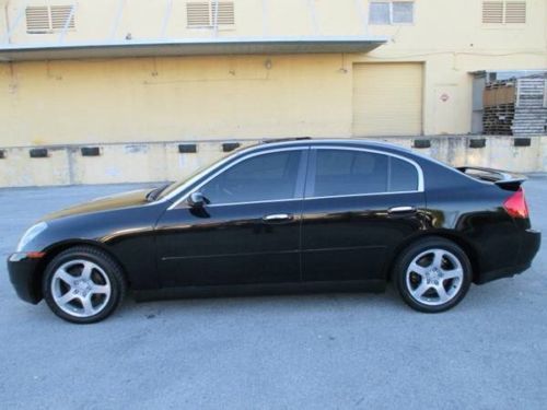 I am selling a 2003 Infiniti g35 Sedan in showroom condition. I'm selling it on ebay because I want to weed out all the craigslist people. I don't want to deal with them. It is in mint condition has every feature you can think of except for navigation. Has new tires and has been cared for meticulously. The out side is flawless no dents or scratches. The inside is near flawless no rips tears and the seats don't look worn down at all. The car runs like a top need nothing just a right rear brake pad, but can still be ridden on. This car is mint!!!!! I'll let the pictures do the rest of the talking. If you have any questions or concerns call (954) 224-6832 ask for Carlos. Thanks for looking and have a blessed day.