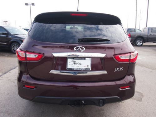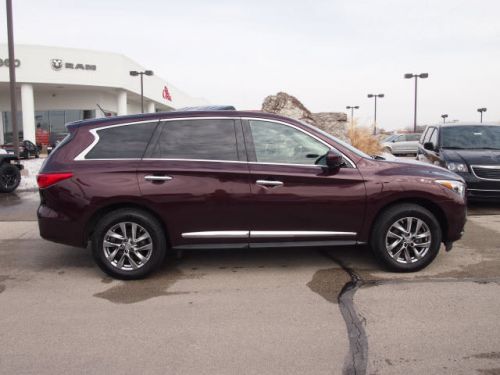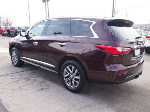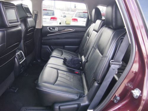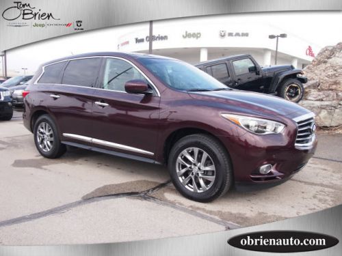 CARFAX 1-Owner. JUST REPRICED FROM $38,944, PRICED TO MOVE $1,100 below NADA Retail! Moonroof, Third Row Seat, Heated Leather Seats, All Wheel Drive, Power Liftgate, Rear Air, [F02] TECHNOLOGY PKG, [P01] PREMIUM PKG READ MORE!======KEY FEATURES INCLUDE: Leather Seats, Third Row Seat, Sunroof, All Wheel Drive, Power Liftgate, Rear Air, Heated Driver Seat, Satellite Radio, iPod/MP3 Input, Aluminum Wheels, Dual Zone A/C, Heated Seats, Heated Leather Seats Privacy Glass, Remote Trunk Release, Steering Wheel Controls, Child Safety Locks, Heated Mirrors. ======OPTION PACKAGES: PREMIUM PKG: Infiniti hard drive-based navigation system w/8 color touch-screen display, voice recognition, XM NavTraffic w/real-time traffic info, XM NavWeather w/real-time weather, Zagat Survey restaurant guide, Infiniti Connection w/1-year basic & Plus service subscriptions, Around View monitor w/front/rear sonar system, Bose (13) speaker audio system, AM/FM stereo w/CD/DVD/MP3 player, radio data system (RDS), speed-sensitive volume control, Bluetooth streaming audio, front seat memory w/driver lumbar, steering wheel memory, exterior mirror memory, entry/exit assist, Intelligent Key, exterior mirrors w/reverse tilt-down, auto-dimming rear view mirror, HomeLink universal garage door opener, TECHNOLOGY PKG: intelligent cruise control, intelligent brake assist (IBA) w/forward collision warning, blind spot warning system, back-up collision intervention, distance control assist, active trace control, eco pedal, heated steering wheel, remote engine start, technology lane departure warning w/lane departure prevention, blind spot warning w/blind spot intervention, front pre-crash seat belts. Reduced from $38, 944. ======VISIT US TODAY: Huge Selection - Low Prices - Award Winning Service. Let our Family work for you - Since 1933! Pricing analysis performed on 5/30/2014. Horsepower calculations based on trim engine configuration. Please confirm the accuracy of the included equipment by calling us prior to If saving money is important to you, visit Tom O'Brien - Indianapolis, Indy's Preferred Chrysler Jeep Dodge Ram dealer! As the largest CJDR dealer in Indiana, Tom O'Brien always has a great selection of new and used vehicles with low prices and professional customer service. Visit Tom O'Brien Chrysler Jeep Dodge Ram - Indianapolis today to see how "Our Family Works for You! Since 1933."