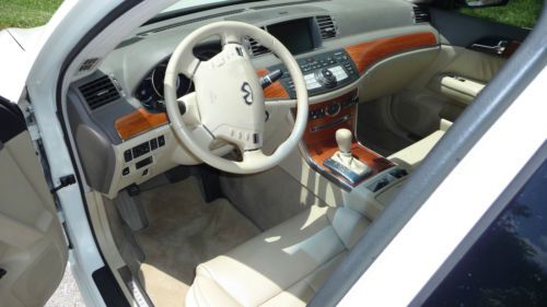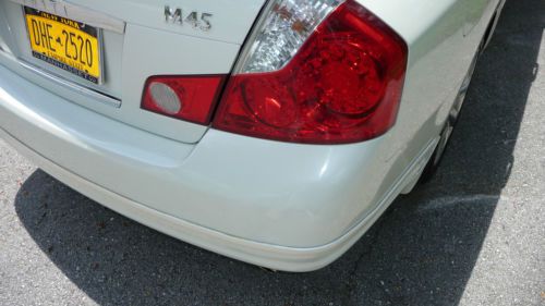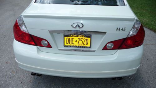 UP FOR SALE IS AN ORIGINAL, ONE OWNER, INFINITI M45. THIS CAR HAS BEEN GARAGED, MAINTAINED, AND SERVICED, FROM DAY ONE BY AN AUTHORIZED INFINITI DEALERSHIP. I HAVE EVERY RECEIPT, INCLUDING THE BILL OF SALE, AND WINDOW STICKER. EQUIPPED WITH VIRTUALLY EVERY OPTION OFFERED AT THE TIME, THE OWNER ALSO HAD A LO JACK SYSTEM INSTALLED, AND ACTIVATED THE XM SIRIUS RADIO SYSTEM . EVERY PART OF THIS CAR IS CLEAN, EVEN THE DOOR JAMBS, WITH NO DENTS OR SCRAPES. ORIGINAL DEALER FLOORMATS ARE PRACTICALLY NEW LOOKING. THE CAR BELONGED TO A GOOD FRIEND, WHO RECENTLY MOVED TO SO. FLORIDA FROM FOREST HILLS. IT IS CURRENTLY AT MY HOME IN WEST PALM BEACH.
