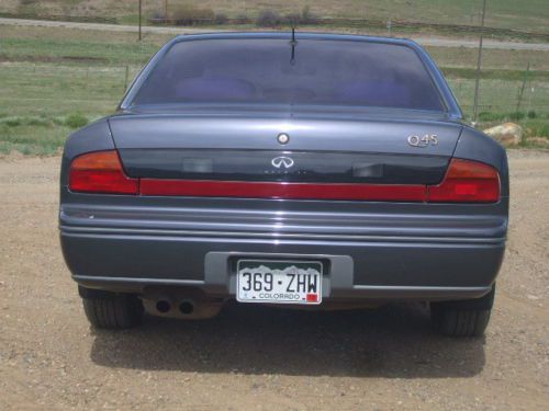 This car has the much sought after original Q45 engine. It has been garaged for the last twelve years and is in great shape. It has four new tires and a new battery. After installing the new battery the engine fired right up and runs smooth. The pick up of this engine is amazing and happy crusing along at high speeds. It has a built in radar detector. There are two sets of floor mats, one black and one white. The white ones have never been used. The car has been detailed inside and out and looks like a new penny. The color is midnight blue with tinted windows, the style is luxurious and plush. It's ready for cruising!