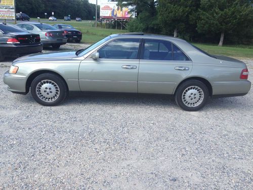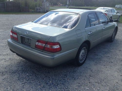 UP FOR SALE ON A NO RESERVE 3 DAY AUCTION HIGH BIDDER WIN IS A TRADE IN THAT WE WHOLESALE TO THE PUBLIC A GREAT CAR FOR A GREAT PRICE.WE DESCRIBE TO OUR BEST ABILITY BUT NOT RESPONSIBLE FOR MISPRINTS OMITS NOT LISTS OR FUTURE ISSUES ON MINOR SITUATIONS ASK YOUR QUESTIONS BEFORE YOU BID OR STOP IN AND TEST DRIVE AND INSPECT OR SEND SOMEONE IN IF THE PICTURES AND DESCRIPTIONS DOESN'T ANSWER YOUR QUESTIONS CONTACT US AND WE WILL TRY TO GET YOU A ANSWER.UP FOR SALE ISA 1998 INFINITI Q45 THE FLAGSHIP OF INFINITI THE LUXURY SISTER OF NISSAN!THIS Q45 HAS GREAT MILES FOR THE YEAR JUST OVER 117000 AND THE CONDITION IS GREAT THIS Q45 IS DRESSED IN A LIGHT OLIVE GREEN THAT STILL HOLDS A SHOWROOM SHINE WITH A FEW MINOR SCRATCHES HERE AND THERE BUT OVERALL LOOKS GREAT TOURING TIRES THAT ARE MOUNTED ON FACTORY ALLOY WHEELS STILL HAVE 70 PERCENT TREAD .TRIMMED INTERIOR HEATED LEATHER SEATS THAT HAS AVERAGE WEAR BUT NO RIPS OR HOLES,WOOD GRAIN TRIM WITH ALL POWER FUNCTIONS THAT ARE WORKING POWER SUNROOF WINDOWS DOORS MULTI DISC CD PLAYER AND REMOTE ENTRY AND LOCK WITH 2 KEYS WITH PADS THIS Q45 IS POWERED BY A 4.1 LITER V 8 ENGINE THAT RIDES AND DRIVES SMOOTH AND EASY AS WELL AS HANDLES WELL WITH A 4 SPEED SEMI AUTOMATIC TRANSMISSION THAT SHIFTS SMOOTH AND QUICK OVERALL THIS Q45 IS A GREAT CAR AND IF YOU ARE LOOKING FOR ONE THIS IS THE ONE TO HAVE THIS Q45 HAS A LOT OF LIFE LEFT WITH CONTINUED CARE THIS IS A GOOD ONE LISTED LOCALLY SO WE RESERVE TO END THE AUCTION EARLY THERE IS A NO EXCEPTION $200.00 ADMINISTRATION FEE THAT INCLUDES ALL FEES ASSOCIATED WITH THE FINALIZATION OF THIS TRANSACTION AS WELL AS A 60 DAY TEMPORARY TAG IF NEEDED. GOD BLESS AND GOOD LUCK.