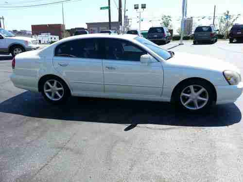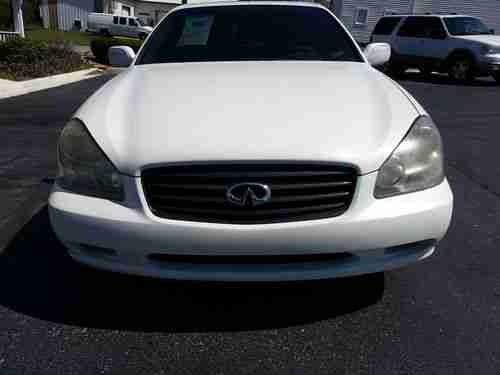 BEAUTIFUL 2002 Infiniti Q45, white pearl on tan leather. This car is fully loaded, leather, roof, heated seats, cd changer in glovebox, absolutely beautiful. All new brakes and rotors all four wheels. The mileage is 160,331 and does show up on autocheck as possible clerical error on the miles. This car runs like new and for the year and miles is in very nice shape. We are selling this car NO RESERVE!!! This car is sold without warranty and is as/is. Don't miss out an awesome car that you can ride around in total luxury. Feel free to contact us at allianceautosales1@gmail.com. Thanks for looking and good luck bidding!