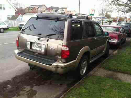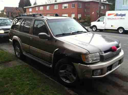 I am selling my 2001 Infiniti QX4 Luxury 2WD SUV with Premium Trim Package and just under 165K miles on the odometer. The vehicle is in great running shape, has no mechanical issues that require repair (there are a couple you may do optionally) and has been well cared for with regular oil changes and other maintenance (belts, etc.). The premium package means that, in addition to the specs for the base model, it has 17" alloy wheels, wood-tone and leather steering wheel, motorized driver's memory seat, steering wheel audio controls, two-tone paint on the exterior, and sunroof package.