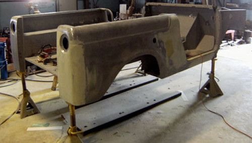 Body and frame sandblasted, small amount of dings repaired.(no major rust or holes) coated with etching primer and paint and Hurculiner applied underbody and in bed and cab floor.