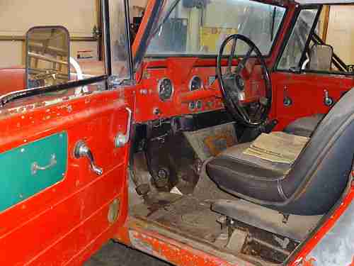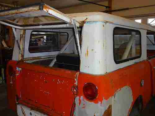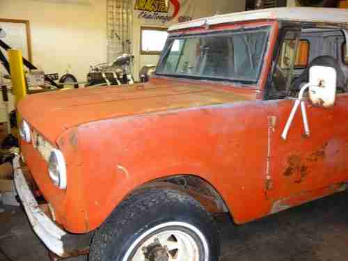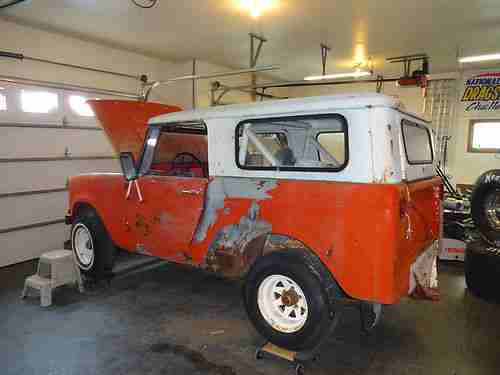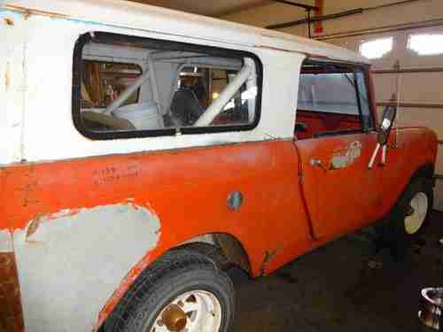 I have a 1964 4 X 4 Internation Scout 80 For Sale with a great Drive Train, Rough Body. Okay it's the same old story, was going to rebuild this scout and do not have the time right now. Just too many iron's in the fire. The body is real tough at the rockers, back end and bottom of main body. The doors all work and shut, windows roll up and down, the glass is good but the windsheild does have a crack in it. The rear hatch does work fine as does the tail gate. The floors are in somewhat good shape. The front of the scout is in good shape, fenders hood grill. The top is in pretty good shape. There are some buckets up front in great shape and the rear seat is great shape.