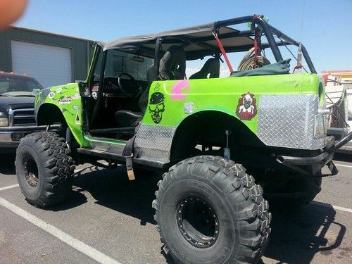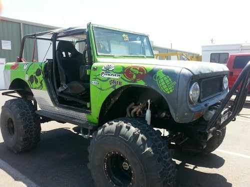 This is probably one of the coolest scouts around,it has a 400 horse chevy 350 with headers and flowmasters a turbo 400 t10 transfer case, dana 44 up front dana 60 in back, with moser axles and 5.88 gears front and back and arb air lockers front and back has a compressor under hood with air fittings front and back for lockers too. 8000 pound winch with synthetic rope sits on 40" super swampers with alot of tread left and spare true beadlock wheels and has hydralic ram steering very easy to turn crash bars and rock lights too. soft suspension it is streetable too the interior has autometer carbon full gage set leather bucket seats and stock back seat in all good condition