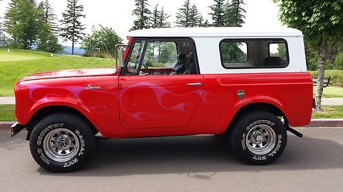 1969 INTERNATIONAL HARVESTER SCOUT 800 4X4 NO RESERVE Hello Ebayer's, up for auction is this super cool 1969 International Scout 800, it is a 4x4 convertible SUV, with a very powerful 4.4L 266ci V8 engine and 3spd on the floor manual transmission. This truck is super nice, sporting Cherry Red exterior with Ghost Flames, a white top and black interior it will be sure to get you a lot of attention. The cool thing about these vehicles is that there very versatile, great for off roading, trips to the dunes, day at the beach or just cruising around town. great for all seasons your only limited to your imagination. These vehicles are rare and harder to come by now a days, so don't hesitate and miss your chance to own this beauty, being offered at auction for only 5 days and will be sold to highest bidder "NO RESERVE" If you have any questions or concerns please ask prior to bidding. 0 and low feedback bidders are welcome but please call before bidding (702) 788-3375 thank you and GOOD LUCK!!!
