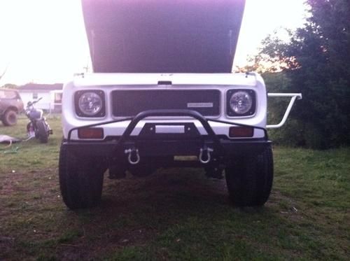 Up for auction is one of the nicest Scout 800 daily drivers you will see. This truck has been converted over to diesel using a Nissan SD33 so you grt approximately 28 mpg and it also has a custom aluminum 30 gallon tank. Truck has a Torquflite 727 automatic transmission with a dana 30 front and dana 44 rear axle geared at 331 so you can cruise the interstate at 70 mph with no problem. Other upgrades include power steerinv, disc breaks with hydraboost and am/fm cd, you will not find a cleaner smoother driving Scout than this. Truck also has custom front and rear bumpers with a winch plate and tube doors ro enjoy the weather. The floor and top were rhino lined after all rust was removed and the sests were recovered with waterproof marine grade material. Again this is a super truck with little to no rust in great comdition inside and out, it drives like a newer vehicle with all the upgrades and I wouldnt hesitate to head across the country in it. Truck is for sale locally so I have the right to end the auction at any time, call or text with any questions 615-624-0330.