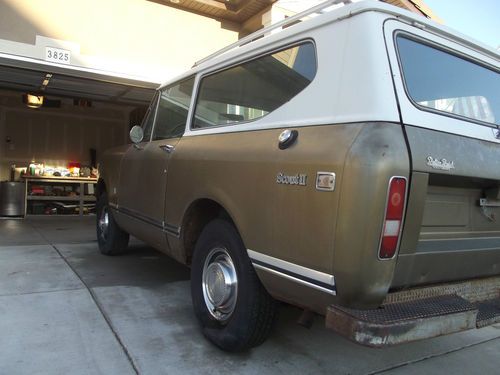 Condition: UsedA vehicle is considered used if it has been registered and issued a title. Used vehicles have had at least one previous owner. The condition of the exterior, interior and engine can vary depending on the vehicle's history. See the seller's listing for full details and description of any imperfections.Seller Notes:"This scout starts, runs and drives great, shifts through the gears smooth. The transmission is very tight. NO LEAKS engine or transmission.NEEDS: passenger mirror, driver seat fabric work, carpet, the factory A/C compressor mounted and hooked up, and work on the door locks and road worthy tires.HAS: All the original trim and hub caps, new plugs, wires, battery, factory car jack, A/C and the previous owner said the motor has 12k on it since being rebuilt. He had no receipts to prove it but the gaskets are aftermarket and are in newer condition. So that that for what its worth."