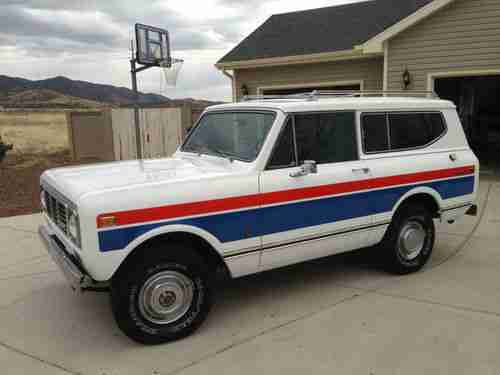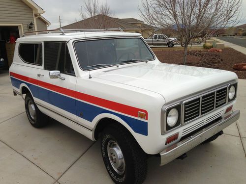 This is a wonderfull International scout and the cleanest I have ever owned. This scout has been my daily driver for the past four years. It was mostly original when I found it. This scout was sold new as a Patriot model from Powell IH in the Phoenix area and has been in Arizona since then. I tried to buy it from the family of the original owner several years before but they were not interested in selling at the time. At that time it still had original paint and red and blue stripes which were cracked and faided.