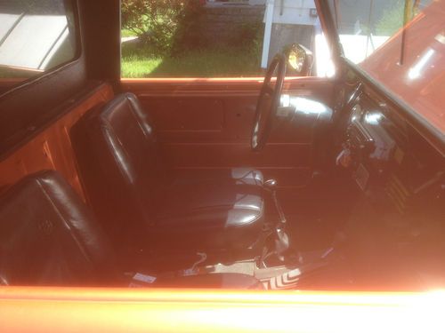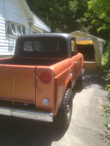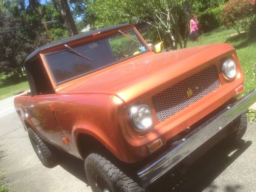 HERE IS HANDS DOWN ONE OF THE CLEANEST SCOUTS YOU WILL FIND.IT HAS A COMPLETE CHEVY DRIVETRAIN FOR RELIABILITY,DANA 44`S FRONT AND REAR THAT WERE REBUILT 2 YEARS AGO BY SHOP,DISC BRAKES UP FRONT,POWER STEERING,LOKAR SHIFTER,EDELBROCK PERFORMER INTAKE AND CARB,OPTIMA BATTERY(6MOS OLD),NEW BEST TOP SEATS AND SEATBELTS,TILT CHROME STEERING COLUMN,ELECTRIC CHROME WIPERS AND MOTORS,HEAVY DUTY TRANSFER CASE OUT OF SUBURBAN,NEW 31X10.5X15s dick cepeck fun country tires.truck runs great with no problems or smoke.cruises on highway at 70 with no problems.has always been garage kept and never seen snow or salt.wiring is all new and so are gauges.has dual gas tanks with new sending units.chrome alternator and air cleaner,i also have like new doors with perfect original slider windows and doors with roll down windows that will go with it along with other parts such as new hinges i never used,rear seat thet needs to be redone but in good shape etc..job relocation is forcing me to sell and breaking my heart!but no joke it is an every day driver not to mention a real head turner.rims are just wagon wheels painted black and were going to be the next upgrade on list but never got to it.ther is no rust anywhere on truck.it was body off resto from shop out in colorado and i have to say they did a nice job.you will not be dissapointed!if you have any questions you can reach me at 727-515-6390.my name is pete and thanks for looking.