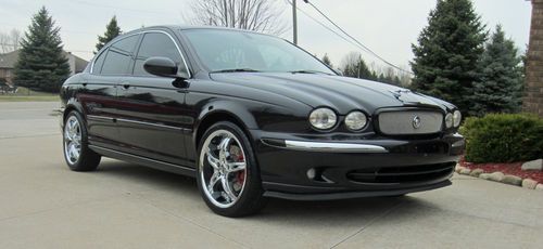 Exterior: Tinted windows, tinted tail lights, tinted side markers, front lip spoiler, rear lip spoiler, custom fiberglass widemouth mesh grill, 18 x 7.5 chrome 2Crave No14 rims with 225/40/18 Falken Ziex tires, powder coated calpiers and drilled and slotted rotors. The wheels are brand new and have only been on the car for a month! Also have stock wheels that are powder coated black with custom red jag emblems for winter driving (this is an AWD car)