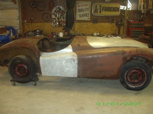 Have heritage certificate. All number matching. Engine, head, transmission. Very early XK120 built in 1950, titled in 1951. Started restoration 20 years ago. Rust only on top of fender as shown. All pieces are present except 1 hub cap and 1 bumberette No top bow. Have side curtains. Have spare engine complete with overdrive transmission. Original engine has had the lower end rebuilt. Never run. Head needs valves and cams installed. Have cams and bearings. Very difficult to find another early number car with fender skirts. You have a project but know what your getting, no surprises. |