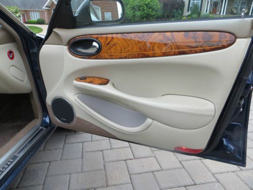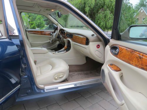 JAG ! JAG! JAG! ALWAYS WANTED TO OWN ONE ? THIS IS IT, A BEAUTIFUL 'OPALESCENT SAPPHIRE BLUE' (Navy metallic blue) ONE OWNER, 4.0 Litre JAGUAR XJ8 'VANDEN PLAS' (Sport) SEDAN WITH ACTUAL LOW MILES (ALMOST 66,000) WITH LEATHER INTERIOR, GLOSSY BURL WALNUT TRIM AND WOOD DASH. THIS CAR IS A ONE OWNER CAR PURCHASED NEW FROM 'ROSENTHAL JAGUAR.' (The sticker price on this car was $ 62,450.00 IN 2002 AND IS LOADED !!!) THIS BEAUTY HAS THAT INCREDIBLE JAG SEDAN 'XJ' FOUR DOOR LOOK WHICH ONLY EXISTED UNTIL 2002. (FROM THAT POINT, THEY CHANGED THE LOOK). THIS CAR WILL BE A 'CLASSIC' AS IT AGES AND WILL BE HARD TO FIND IN THIS CONDITION AND COLOR. POWERFUL 4.0 LITRE 'SPORT' ENGINE POWERPLANT THAT WILL SHOCK YOU WITH THE ACCELERATION BUT INCREDIBLY SMOOOOOOOTH RIDE. AND WHEN YOU STEP BACK AND LOOK AT IT, PURE CLASSIC BRITISH JAGUAR LINES THAT HAS NOT BEEN EQUALLED. TIRES ARE IN EXCELLENT CONDITION. ENGINE GOOD, 'SPORT' SHIFT TRANSMISSION AND 'SPORT' MODE 'S' BUTTON ON THE CONSOLE AT THE SHIFTER. COOL AS IT GETS !! Current Virginia Inspection. CONNOLLY LEATHER INTERIOR, WILTON WOOL CARPETS, BOTH IN NORMAL WEAR AND TEAR CONDITION for a light colored leather interior. Note; AS USUAL, DRIVER'S SIDE SEAT NEEDS SOME RECONDITIONING AS IT GETS THE MOST USE. CAR ALWAYS STORED INSIDE. ORIGINAL OWNER. 'ALPINE' STEREO SPEAKERS... UNREAL STEREO SOUND, CASETTE PLAYER, 6 DISC CD (Remote in trunk). New Battery. Car rides like a dream. If you ever wanted to own a Jag Sedan this is it ! Pull up to the Country Club or any valet and you will be complimented. This is the best Jag for the money you will find. Selling it for wife who wants to concentrate on spoiling the grand kids, travel, family reunions, etc., as it is not getting enough use and just wants to move on due to other priorities, and unfortunately, its just not a 'rug rat car.' (no offense Kids !). We're gonna miss it but have enjoyed it thoroughly. Super classy car !! It's a JAG ! AS USUAL, CAR HAS NO WARRANTY EXPRESSED OR IMPLIED (it's 12 years old), and IS BEING SOLD 'AS IS, WHERE IS, WHAT IS'. A $500.00 DEPOSIT IS REQUIRED TO BE MADE BY PAYPAL WITHIN 24 HOURS OF THE AUCTION CLOSE BY THE WINNER OF THE AUCTION. BALANCE OF FINAL PAYMENT (MUST BE CASHIERS CHECK, WIRE TRANSFER, CASH WITHIN FIVE (5) DAYS OF THE CLOSE OF THE AUCTION. BIDDERS ARE REQUIRED TO HAVE A PAYPAL ACCOUNT FOR THE DEPOSIT. Inspections are welcomed. We are located in northwestern Virginia off of Interstate 81.